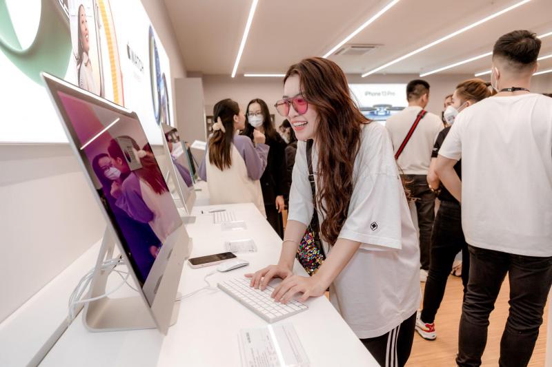 Có lẽ đây là chương trình “chịu chi” nhất khi dành ra rất nhiều phần quà hấp dẫn cho khách tham quan. Ngoài suất khuyến mãi 0đ, khách đến còn được tặng áo thun và phiếu mua hàng 300.000đ. Vì thế, không có gì đáng ngạc nhiên khi sáng 12/4, hơn 5.000 lượt khách đã đến tham quan check-in tại cửa hàng. Quyen Qui, cô nàng hot Tiktoker, đồng thời cũng là một big fan của Apple cũng vô cùng ngạc nhiên và thích thú khi đến tham gia sự kiện. “Mình cảm thấy rất bất ngờ, không nghĩ là sự kiện hôm nay sẽ thu hút nhiều người tham gia như vậy”.