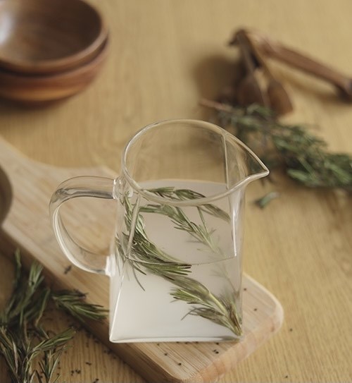 – Cho gạo vào bát và rửa kỹ. Cho gạo đã vo sạch vào bình thủy tinh và thêm vào 2 cốc nước cùng với lá hương thảo. Để nó lên men trong 6 giờ hoặc qua đêm. Thêm hương thảo vào nước gạo không chỉ có thêm lợi ích mà còn giúp che đi mùi chua của nước gạo lên men. Vào buổi sáng, bạn hãy lọc lấy nước vo gạo và để trong tủ lạnh để dùng trong quá trình chăm sóc tóc của bạn. Bạn có thể tận dụng phần cơm còn sót lại để làm dầu dưỡng tóc.