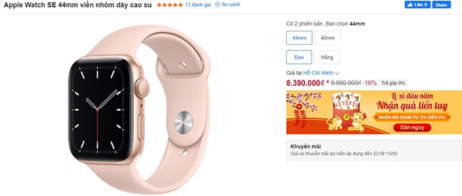5. Apple Watch SE (giảm tới 1,6 triệu đồng)