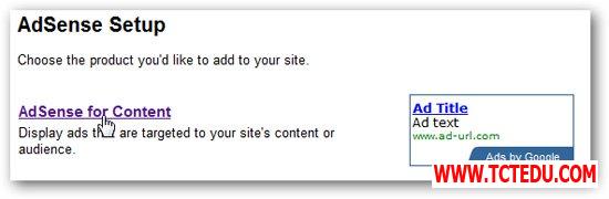 Chọn đường dẫn AdSense for Content.