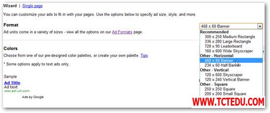 Chọn kích cỡ mà bạn muốn hiển thị quảng cáo ở menu Format. Nếu không chắc chắn, bạn có thể thấy ví dụ khi kích vào đường dẫn Ad Formats.