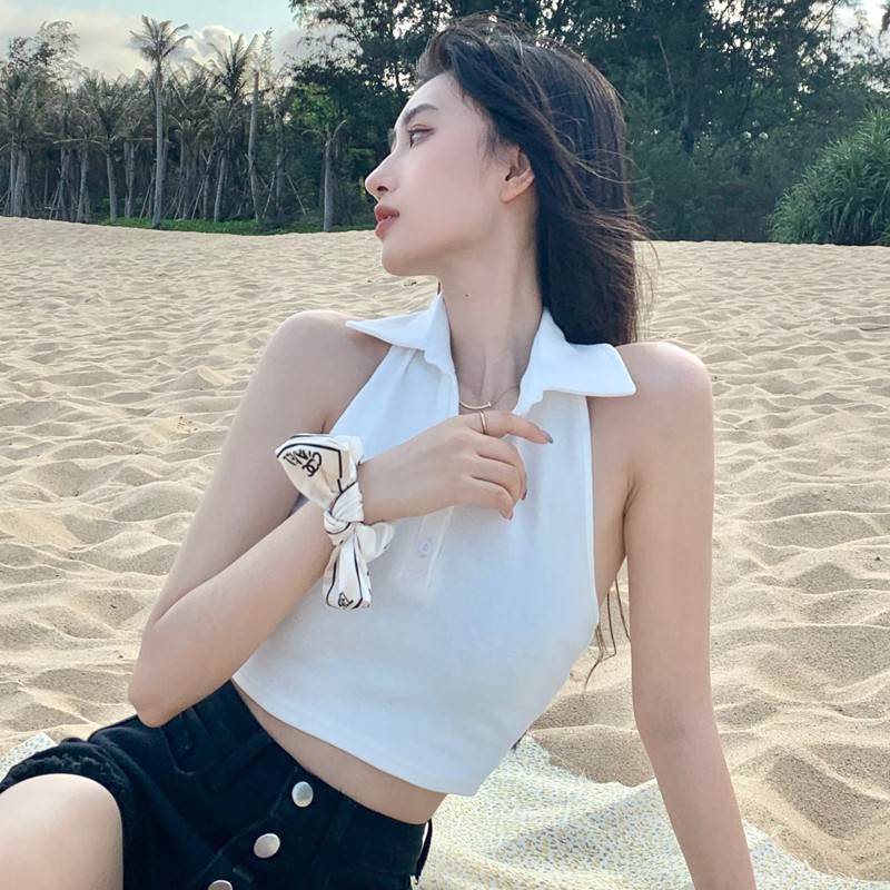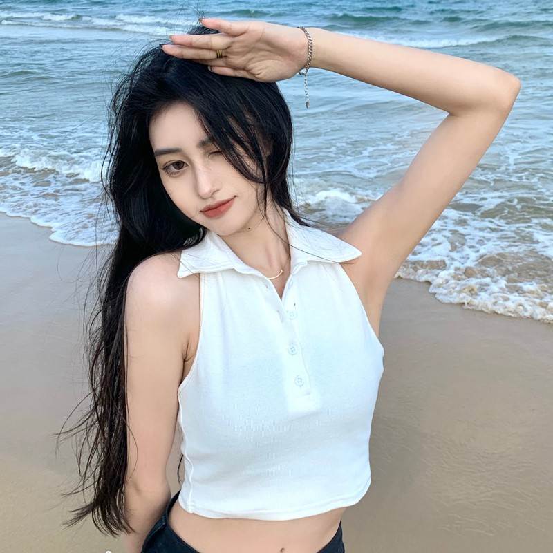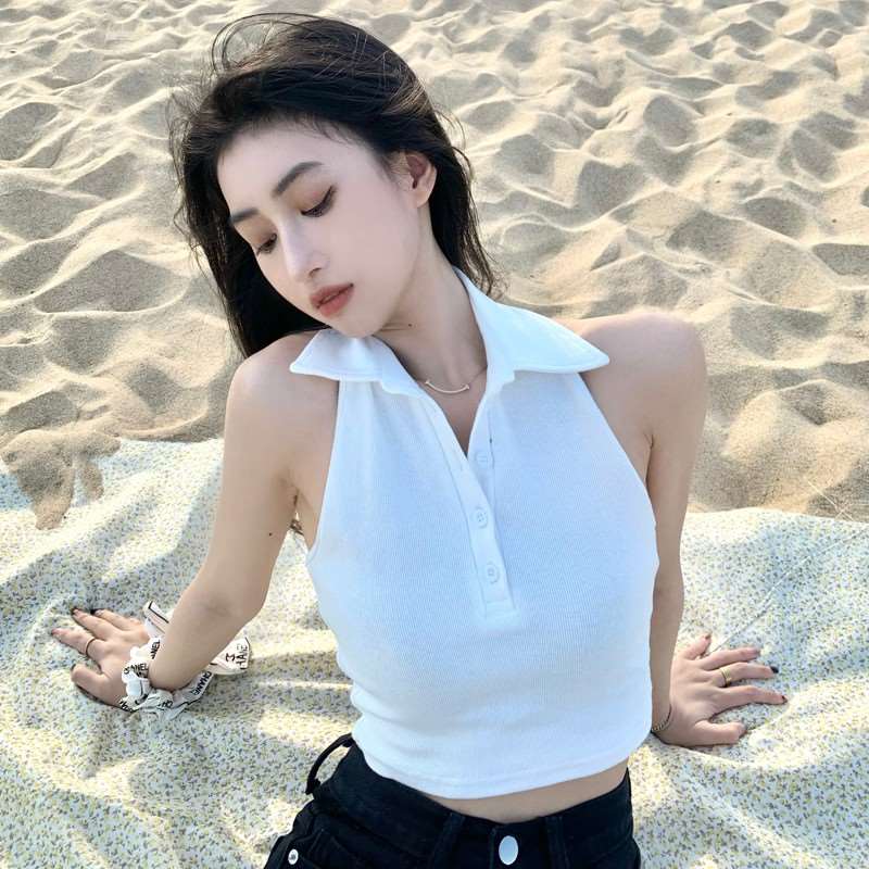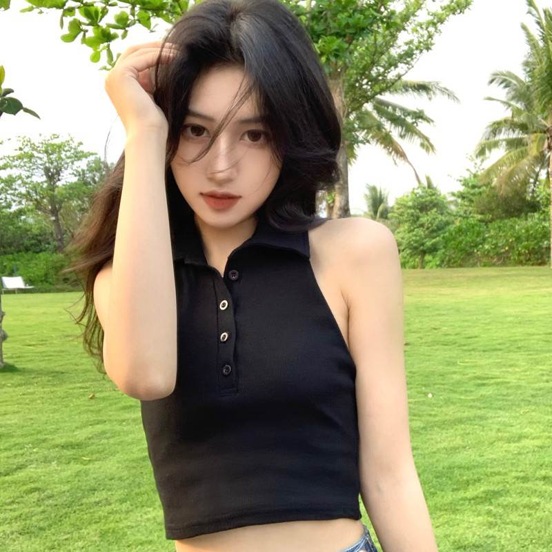 Áo Croptop 3 Lỗ Cổ Bẻ Cúc Cài Áo Crt Sát Nách 2 Màu B019