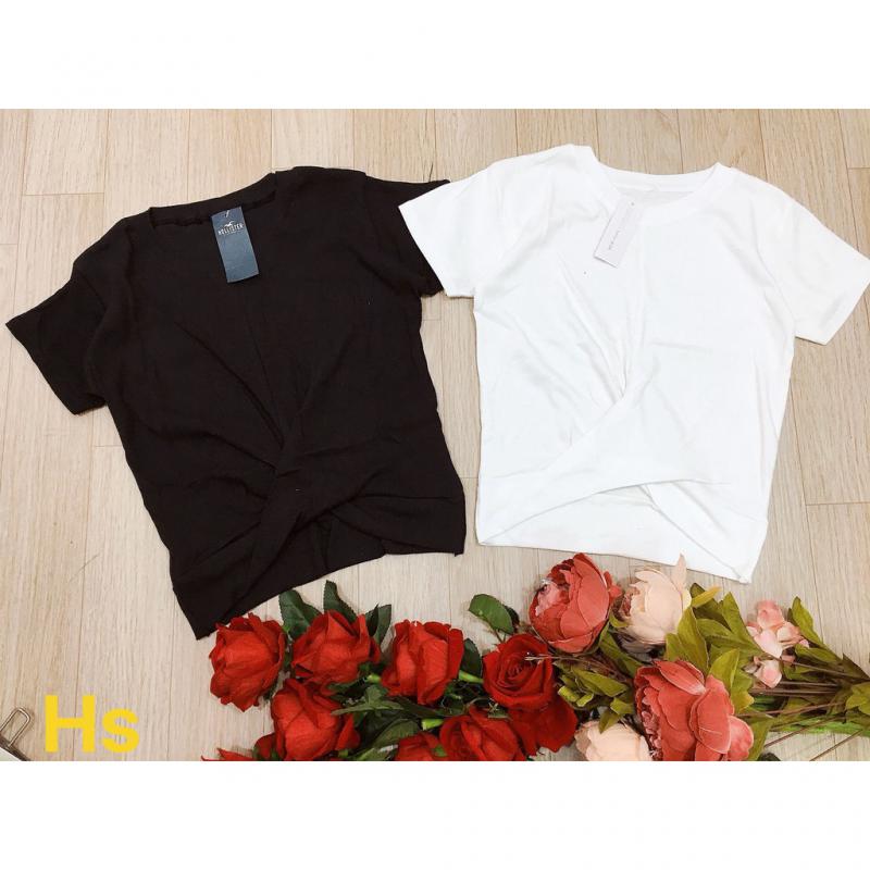 Áo Croptop Nữ Xoắn Eo Dáng Cộc Tay Cổ Tròn 2 Màu B009