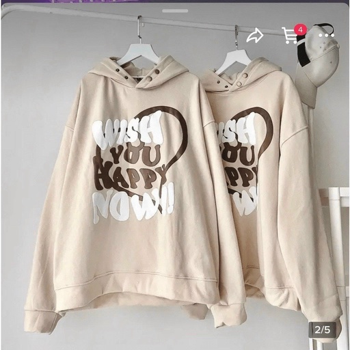 ÁO HOODIE NỮ VẢI NỈ WISH YOU HAPPY PHỐI NÚT CỔ CÁ TÍNH THỜI TRANG