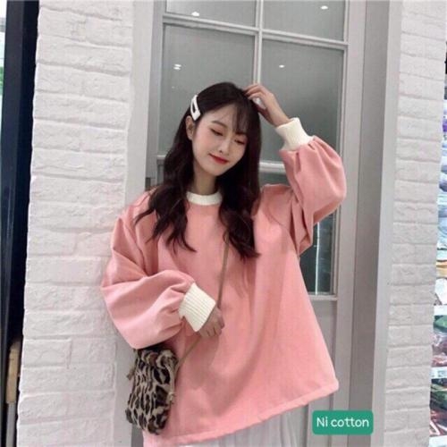 Áo khoác nỉ Sweater cotton dày mịn, tay bồng, túi zip