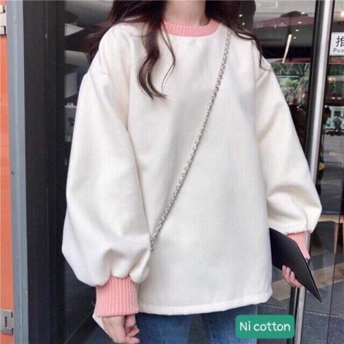 Áo khoác nỉ Sweater cotton dày mịn, tay bồng, túi zip