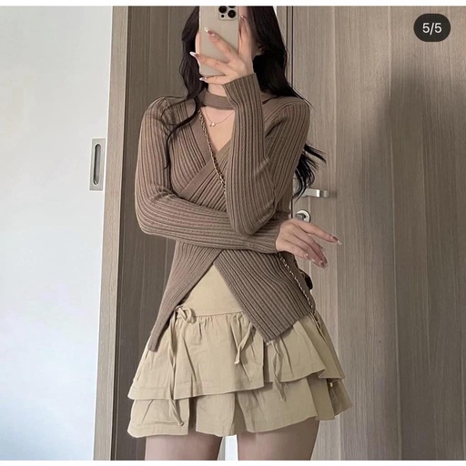 ÁO LEN DỆT KIM DÀI TAY KHOÉT NGỰC CỔ VÒNG HOT TREND