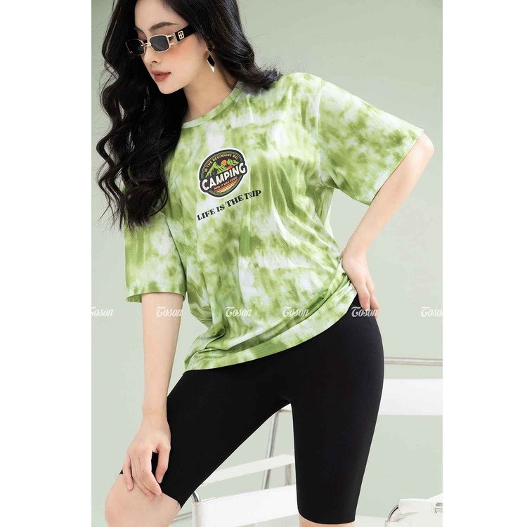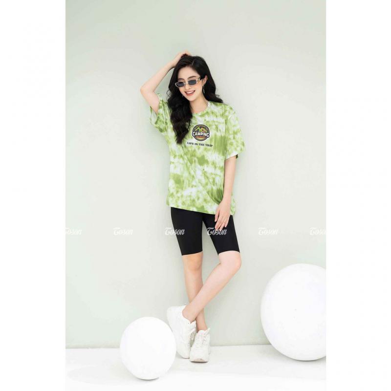 Tên sản phẩm: Áo Phông Cotton Loang Xanh, Dáng Rộng In Hình Camping – Toson
