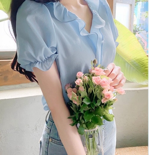 ÁO SƠ MI CÔNG SỞ NỮ CỔ BÈO TAY NGẮN BO CHUN XINH XẮN AA561