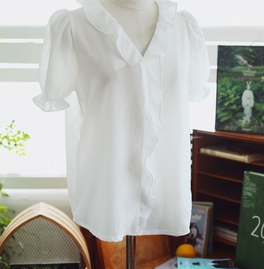 ÁO SƠ MI CÔNG SỞ NỮ CỔ BÈO TAY NGẮN BO CHUN XINH XẮN AA561