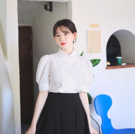ÁO SƠ MI CÔNG SỞ NỮ NGẮN TAY, ÁO KIỂU CỔ LÁ TRÒN TAY PHỒNG AA582