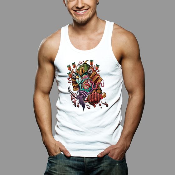 Tên sản phẩm: Áo Tank Top Thể Thao In Hình Scary Japanese Demon Samurai Eating Rat 6552 – HTFashion