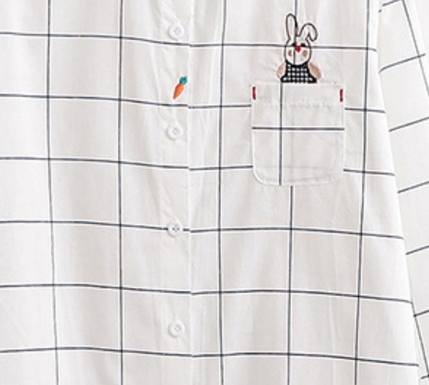 Tên sản phẩm: Áo Thêu Hình Thỏ, Cà Rốt, Áo Sơ Mi Công Sở Nữ Trắng Kẻ Dài Tay AA559 – Quyên Fashion