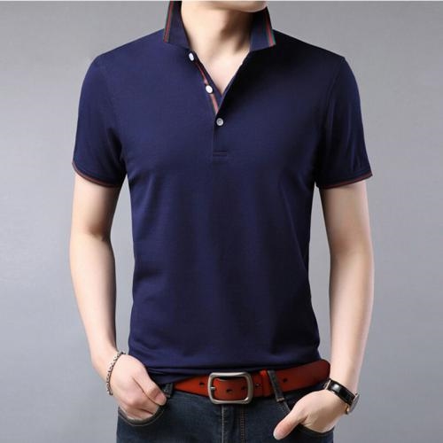 Áo thun nam cổ bẻ phối viền, ngắn tay.