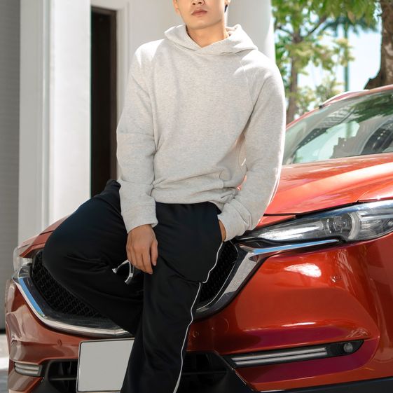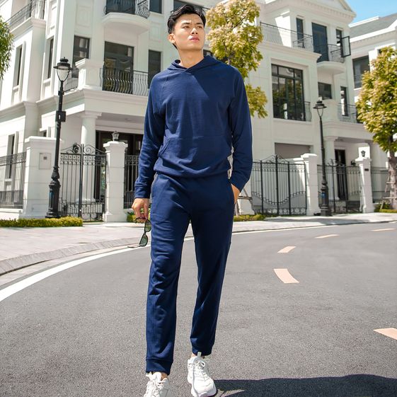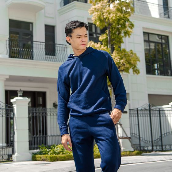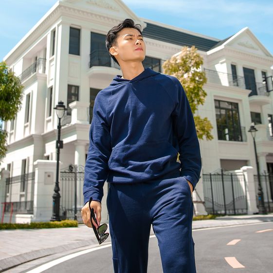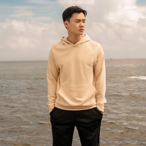 Áo có kiểu dáng Hoodie nam, dài tay, kiểu suông vừa, có túi ở bụng, kèm mũ liền áo giúp giữ ấm đầu và tai, có bo tay và bo gấu.