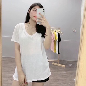 Áo thun nữ cổ tim được làm bằng chất liệu thun cotton 100%, co dãn cực tốt, thoáng mát, thấm hút mồ hôi tuyệt đối, vô cùng phù hợp với mùa hè nóng bức.