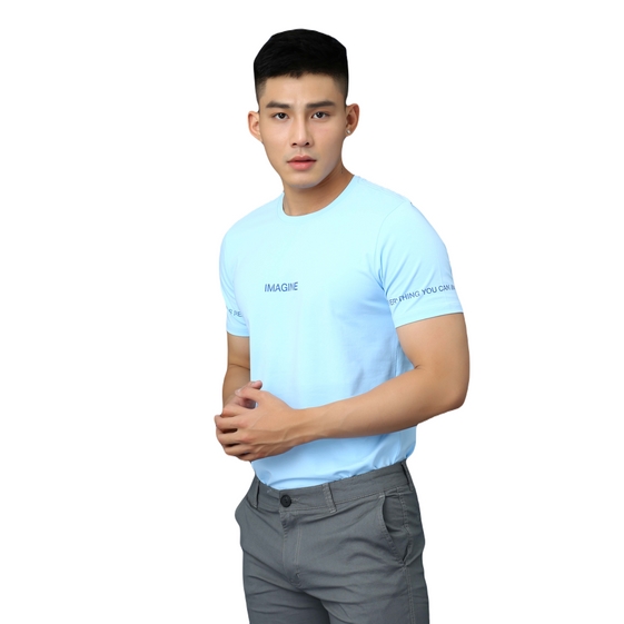 Áo thun nam tay ngắn hoạ tiết chữ Imagine phong cách Akuba form slimfit, chất liệu cotton 100% organic, thấm hút mồ hôi tốt, co giãn 4 chiều, tạo thoải mái khi mặc.
