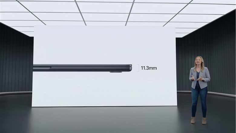 Mặt khác, Macbook Air M2 chỉ dày 11.3mm (giảm đáng kể so với độ dày 16.3mm của M1). Máy chỉ nặng 2.7 pound (khoảng 1.22kg), là một trong những chiếc laptop mỏng nhẹ nhất hiện tại. Bởi vậy tính di động của sản phẩm mới nhất nhà Apple cực cao, dễ dàng mang theo để bạn có thể làm việc mọi lúc mọi nơi.