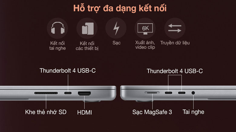 | 14 | Cổng giao tiếp | 3 x Thunderbolt 4 USB-C, HDMI, Jack tai nghe 3.5 mm |