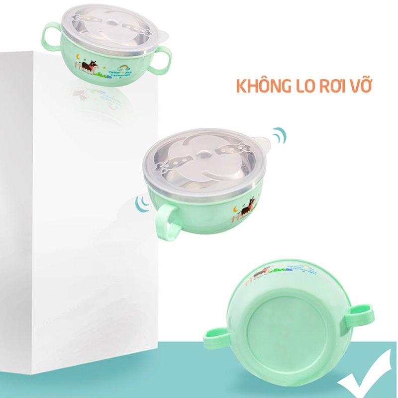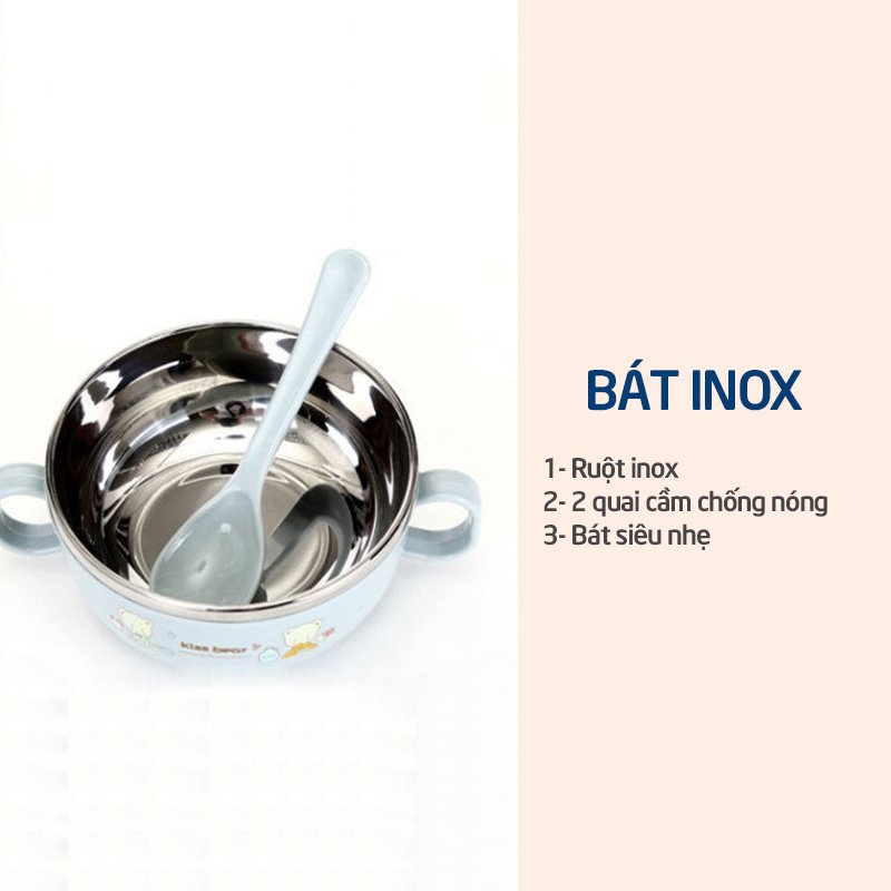 – Bát ăn dặm inox có quai cách nhiệt giúp giữ và di chuyển an toàn