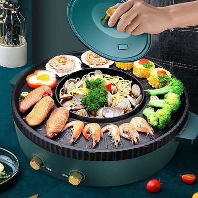 Tên sản phẩm: Bếp Lẩu Nướng Hình Tròn 2 Trong 1, 2 Nguồn Điện, Công Suất 2200W – Hongshuangxi