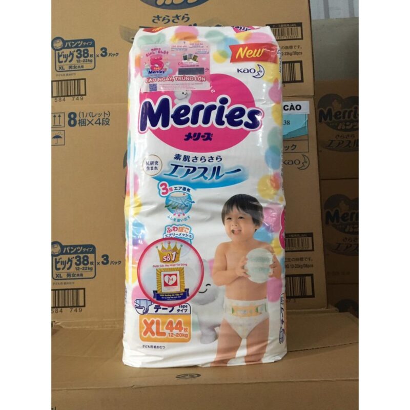 – Bỉm Merries XL với 44 miếng tã.