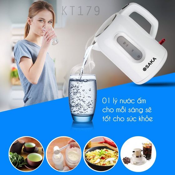 Bình đun siêu tốc KT179 – Osaka giúp đun sôi nước, pha trà, pha cafe, nấu mì ăn liền, pha sữa, khử trùng đồ vật trẻ em.