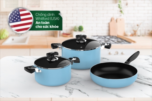 Bộ Nồi Chảo CD Đáy Từ Sunhouse SHG77MB Xanh Dương