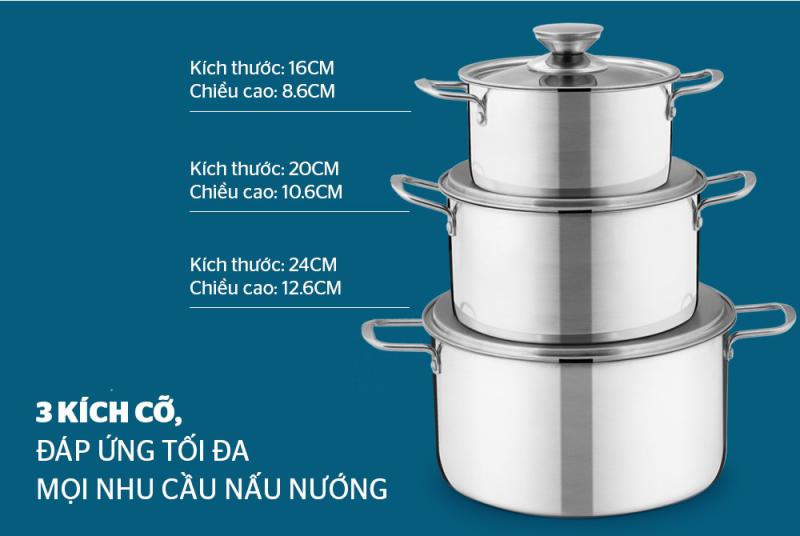 Kích thước: Đường kính lòng nồi: 16-20-24cm