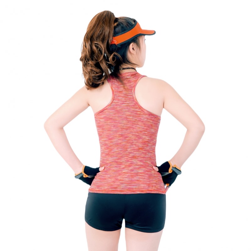 Tên sản phẩm: Bộ Đồ Tập Thể Thao Nữ Quần Đùi Áo 3 Lỗ Phối Màu Dọc Bên Hông DN108 Màu Cam – Ansa Sport