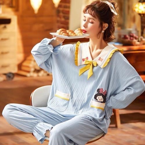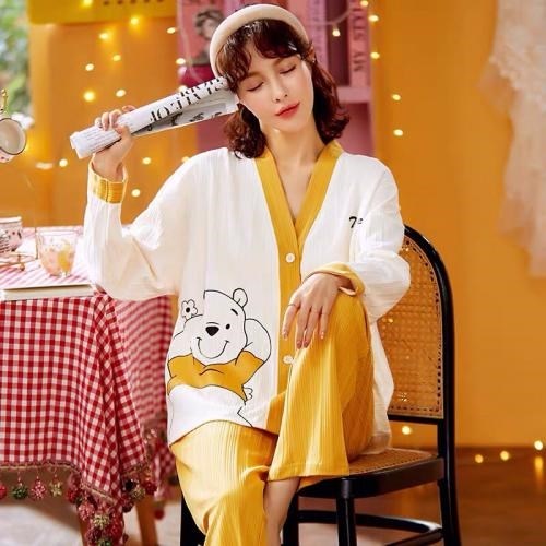 Bộ Pijama Nữ Dài In Hình Chất Tăm 2 Màu Phối Màu