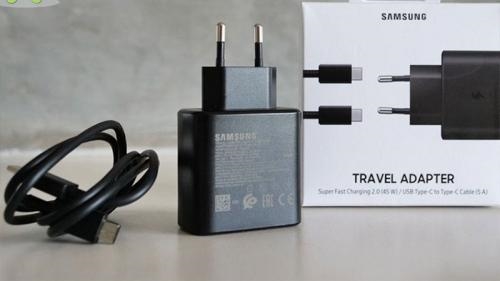 – Cáp sạc nhanh Samsung 45W chuẩn Type C to Type C (thường gọi là cáp 5A, có kích thước lớn hơn các loại cáp thông thường): cáp có sử dụng bộ điều chỉnh dòng điện để tương thích tối đa với công suất của củ sạc 45W