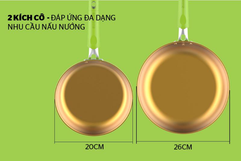 Chất liệu: Nhôm nguyên chất Chất liệu: Inox Số chảo: 2 Màu sắc: Xanh – vàng gold