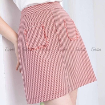Tên sản phẩm: Chân Váy Kẻ Dáng A, Lắp Túi Phối Tua Rua – Toson