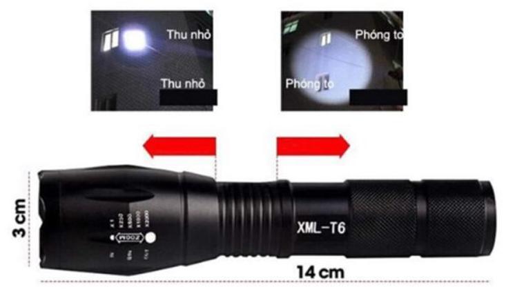 + Điều chỉnh zoom xa, gần nhóm ánh sáng lại 1 điểm giúp chiếu xa lên tới 100 mét.