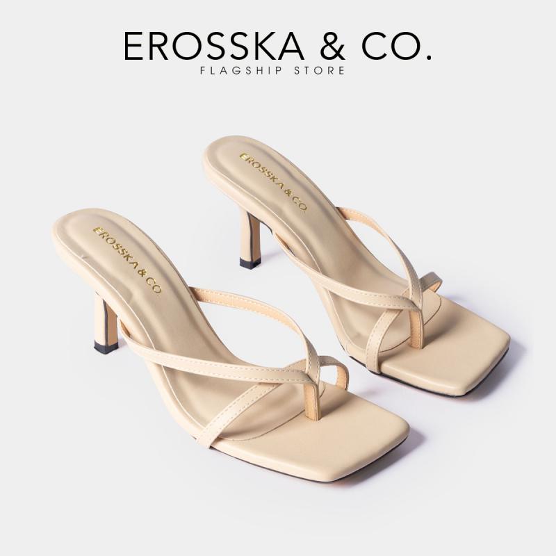 Dép cao gót thời trang Erosska mũi vuông kiểu dáng xỏ ngón phối dây quai mảnh gót nhọn cao 7cm EM060
