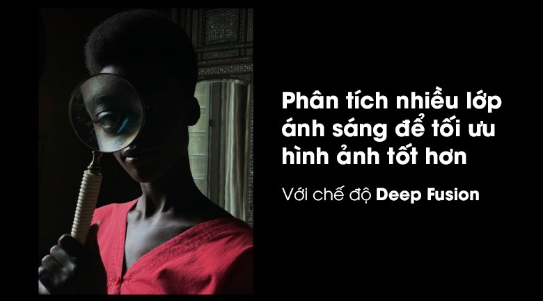iPhone 12 Pro Max đã bổ sung tính năng Deep Fusion làm nổi bật chi tiết đối tượng. Tính năng Deep Fusion sẽ phân tích điều kiện ánh sáng để điều chỉnh độ phơi sáng thích hợp giúp tối đa hóa chi tiết bức ảnh.