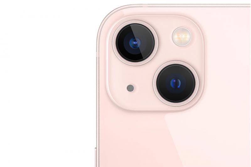 iPhone 13 sở hữu 2 camera phía sau gồm camera chính (Wide) độ phân giải 12 MP, camera góc siêu rộng (Ultra Wide) 12 MP. 2 camera được đặt chéo cho phần cảm biến trên máy được rộng hơn.