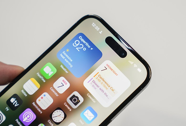 Điểm khác biệt nhất chính là phần màn hình của iPhone 14 Pro đã loại bỏ tai thỏ và thay thế vào đó là thiết kế hình notch viên thuốc nhỏ nhắn, gọn gàng hơn rất nhiều, đi kèm với đó sẽ là tính năng Dynamic Island để biến cụm này trở nên thú vị hơn qua những thông tin hay thông tin trạng thái. iPhone 14 Pro có trọng lượng 206 gr cho cảm giác cầm vừa vặn, thoải mái hơn so với bản Pro Max. Ngoài ra, iPhone 14 Pro còn có chuẩn kháng nước, bụi IP68 giúp bạn có thể an tâm tiêu dùng máy mà không lo bị vào nước.