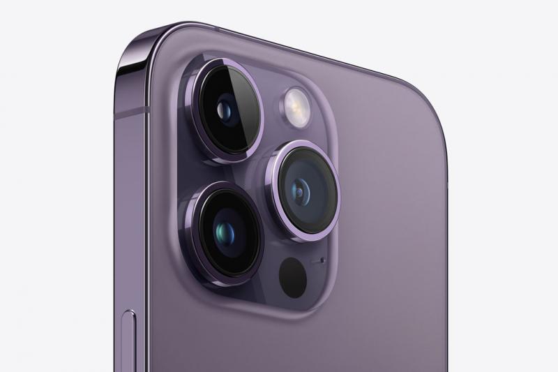 Cụm camera sau trên iPhone 14 Pro bao gồm 3 ống kính (camera telephoto, camera góc siêu rộng và camera chính góc rộng). Camera iPhone 14 Pro được cải tiến rất mạnh, đặc biệt là ở camera chính khi Apple đẩy độ phân giải từ 12MP lên gấp bốn lần, ở mức 48MP. hứa hẹn mang đến một trải nghiệm vô cùng ấn tượng về khả năng chụp ảnh trên iPhone mới. Sản phẩm cũng được trang bị camera telephoto 12 MP với khả năng zoom quang học 3x và camera góc siêu rộng 12 MP. Cảm biến mới với khả năng thu sáng tốt hơn 65% so với iPhone 13 Pro. Không chỉ tăng độ phân giải camera mà lần này Apple còn nâng cao thuật toán xử lý ảnh giúp cho iPhone có thể cho ra những bức ảnh chụp đêm có chất lượng tốt hơn, giảm thiểu tình trạng nhiễu hạt hay lóe sáng so với những thế hệ trước đây.