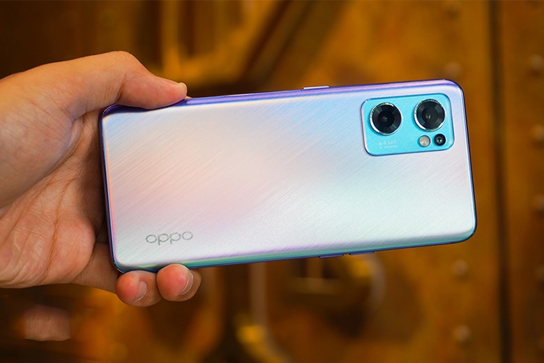 Điện thoại Oppo Reno7 5G tiêu dùng chất liệu nhựa cao cấp nhằm tối ưu khối lượng thiết bị và mặt lưng thủy tinh được phủ một lớp nhám mờ dạng xước chéo giúp hạn chế bám dấu vân tay và mồ hôi trong quá trình tiêu dùng.