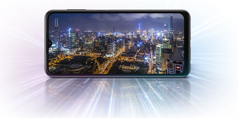 Mặt trước của Galaxy A23 có phần khuyết kiểu Infinity-V để chứa camera selfie. Màn hình PLS TFT LCD Full HD+ 6.6 inch sắc nét từng khung hình, kết hợp với tần số quét 90Hz giúp hiển thị nội dung sống động khi xem phim hay chơi game, mọi thao tác cuộn lướt mượt mà cực đã. Lớp kính cường lực Corning Gorilla Glass 5 chắc chắn có khả năng chống nứt vỡ, bảo vệ thiết bị của bạn khi gặp sự cố.
