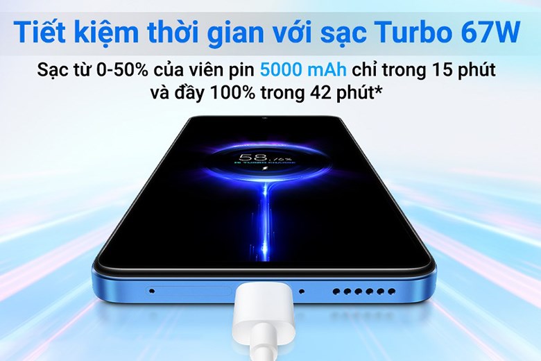 Sạc nhanh Turbo 67W rút ngắn thời gian sạc, từ đó bạn có thể quay lại làm việc, học tập hay hay giải trí hàng ngày không bị gián đoạn lâu.