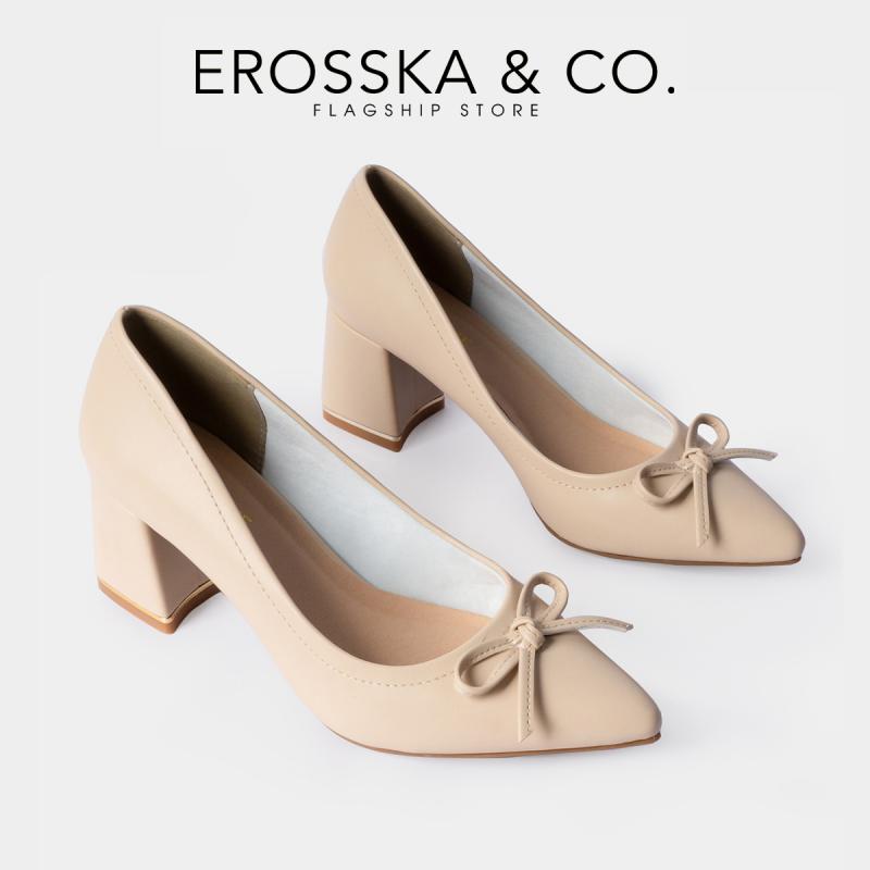Giày cao gót thời trang nữ bít mũi gót vuông phối nơ xinh xắn cao 5cm màu bò _ CP005