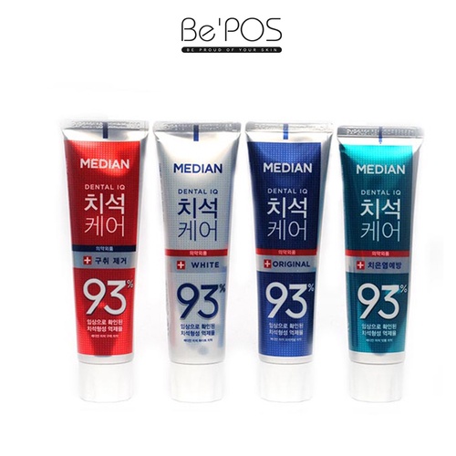 Kem Đánh Răng Giúp Trắng Răng, Giảm Ố, Loại Bỏ Mùi Hôi Median Dental IQ 93% Toothpaste là dòng sản phẩm chăm sóc răng miệng mang đến tác dụng ngăn ngừa mọi vi khuẩn gây ra hiện tượng cao răng, răng ố vàng lên đến 93% cho người dùng một hơi thở thơm tho, ngăn ngừa và giảm thiểu tình trạng hôi miệng, hiệu quả sau 4 tuần sử dụng đến từ thương hiệu Median thuộc tập đoàn Amore Pacific của Hàn Quốc. Median được mệnh danh là kem đánh răng quốc dân bởi nó được ưa chuộng và phổ biến tại Hàn Quốc. Là loại kem đánh răng hàng đầu được được bác sỹ khuyên dùng để bảo vệ sức khỏe răng miệng cho bạn.
