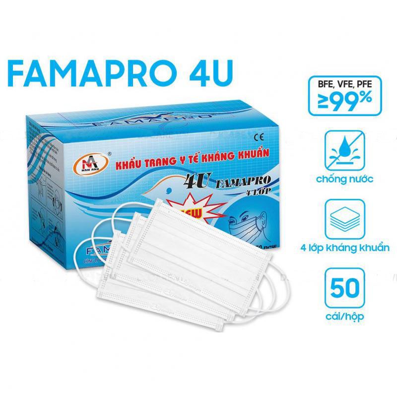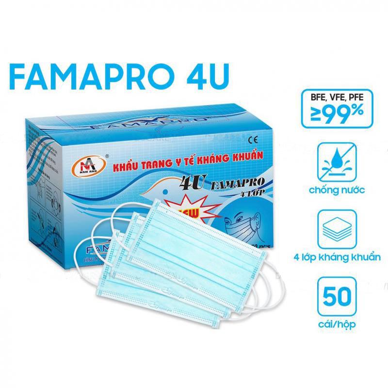 Khẩu trang y tế 4 lớp kháng khuẩn Famapro 4U ( 50 cái/ hộp )
