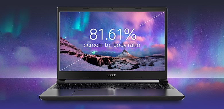 Sở hữu tỷ lệ màn hình so với thân máy là 81.61% nhờ viền màn hình mỏng, Acer Aspire Gaming A715 A715-43G-R8GA giúp bạn thưởng thức trọn vẹn mọi nội dung trên màn hình IPS LCD 15.6 inch có độ phân giải Full HD. Tận hưởng màu sắc sống động rõ ràng hơn với một loạt các tính năng bổ sung được thiết kế để nâng cao hình ảnh và mang lại trải nghiệm xem thoải mái hơn. Acer đã đưa vào chiếc laptop Gaming này công nghệ Acer Color Intelligence và Acer ExaColor có khả năng tự động điều chỉnh độ tương phản và độ bão hòa trong thời gian thực để làm cho hình ảnh trông đẹp nhất có thể.