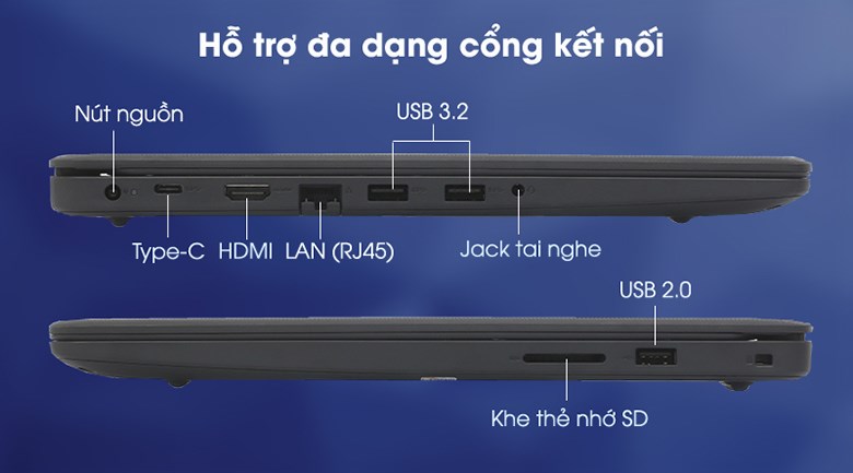 Vostro 3400 V4I7015W trang bị khá đầy đủ cổng kết nối thông dụng như USB 3.2, HDMI, LAN (RJ45), USB 2.0, USB Type-C… Theo đó, bạn có thể dễ dàng kết nối máy tính với các thiết bị ngoại vi khác, hỗ trợ tối đa nhu cầu học tập, làm việc và giải trí hàng ngày.