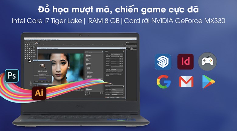 Kết hợp cùng card đồ họa NVIDIA GeForce MX330 cho khả năng đồ họa ổn định, bạn có thể sử dụng Photoshop, Ai hoặc cắt ghép video đơn giản, dựng Vlog,… hay giải trí cùng các tựa game online, chẳng hạn như Liên minh huyền thoại, CS:GO,… ở mức setting phù hợp, chơi game hình cảnh sắc nét, mượt mà.