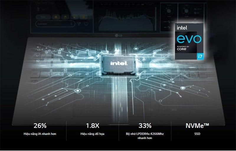 Bên cạnh đó, nhà sản xuất cũng trang bị cho chiếc laptop LG Gram 16 2021 16Z90P – G.AH73A5 chính hãng ổ cứng SSD 256GB NVMe PCle giúp vận hành các ứng dụng nhanh chóng, mượt mà nhất. Đặc biệt, tích hợp card đồ họa Intel Iris Xe Graphics rất hữu ích cho những người dùng thường xuyên tiêu dùng các phần mềm đồ họa nhờ hiệu suất tăng gần gấp đôi so với thế hệ trước. Bạn có thể chỉnh sửa, tạo ra các video chất lượng 4K một cách dễ dàng, hoặc trải nghiệm các tựa game say mê của mình sau khi hoàn thành công việc.